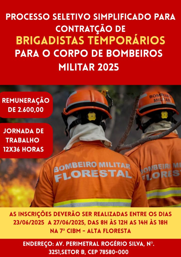Em meio à intensificação das ações de prevenção e combate a incêndios florestais em Mato Grosso, o Corpo de Bombeiros Militar do Estado abriu processo seletivo simplificado para contratação temporária de brigadistas em Alta Floresta. A oportunidade é voltada a quem deseja integrar a linha de frente na proteção das áreas ambientais durante o período de seca, que representa um dos maiores desafios operacionais do Estado.