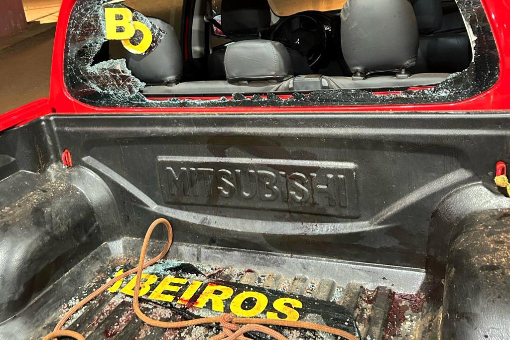 No entanto, após ser colocada na carroceria, devido ao seu porte e força, o animal se debateu e acabou quebrando o vidro traseiro central da viatura. A equipe então conseguiu amarrar as quatro patas da anta para garantir a segurança durante o transporte.