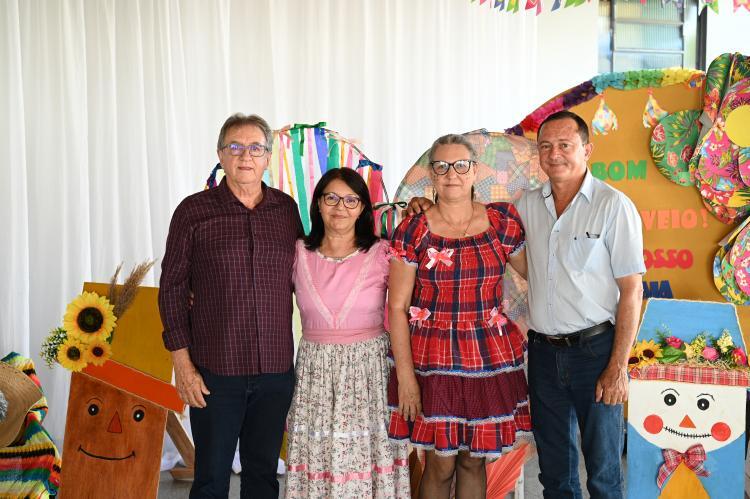 O prefeito Osmar Moreira e o vice-prefeito Dema marcaram presença no evento, acompanhados de suas respectivas esposas, Nair Valentim e Ângela Alberton. Eles interagiram com os participantes, conversaram, ouviram histórias e reforçaram o compromisso da gestão municipal com o bem-estar e a dignidade da população idosa.