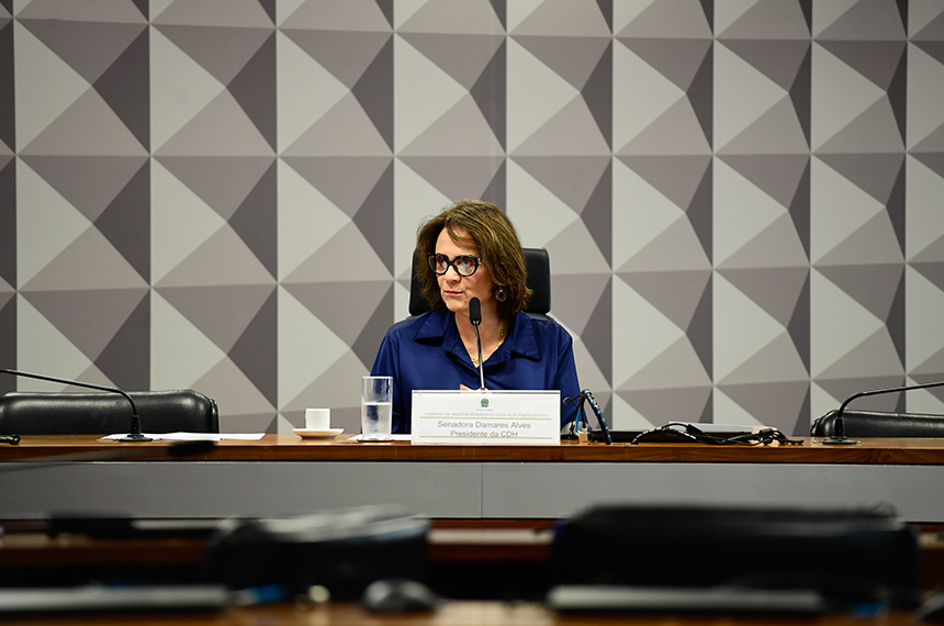 Comissão de Direitos Humanos e Legislação Participativa (CDH) promove ciclo de debates sobre os direitos humanos das crianças, adolescentes e dos jovens, em alusão ao Dia Nacional da Adoção. Mesa: presidente da CDH, senadora Damares Alves (Republicanos-DF). Foto: Saulo Cruz/Agência Senado